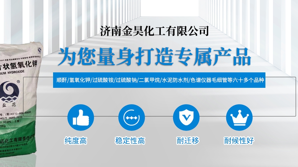 我公司是一家集、研發(fā)、貿(mào)易為一體的綜合性化工公司。主要涵蓋無機化工產(chǎn)品、化工產(chǎn)品、實驗儀器等幾大系列。主營產(chǎn)品為氫氧化鉀、過硫酸銨、過硫酸鈉、順酐、二氯甲烷、水泥防水劑、色譜儀器毛細管等六十多個品種。產(chǎn)品主要用于農(nóng)藥、農(nóng)肥、水處理、制藥、造紙、冶金、建筑添加劑、橡膠制造等多個領域。 歲月不居,時節(jié)如流。公司于2006年成立,如今已十幾個年頭了。一路走來我們一步一個腳印,兢兢業(yè)業(yè),誠信經(jīng)營,如今公司已發(fā)展成為年銷售額近陸仟萬元...